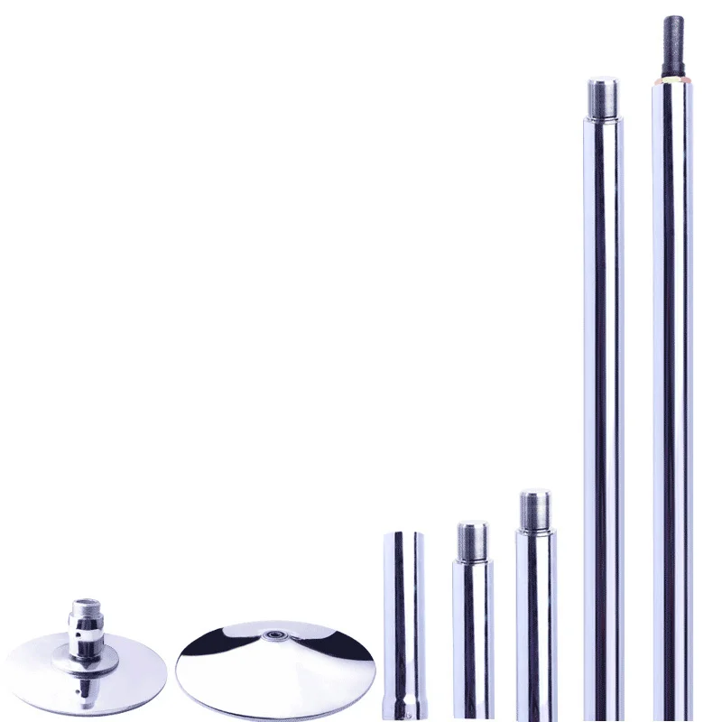 This silver dance pole is made from high quality galvanized steel which is chrome plated and is easy to clean and maintain. The silicone ring around the top and bottom protects the floor and ceiling from damaging. The bottom screw allows you to switch between a turning or fixed pole. The height is adjustable between 223.5 cm and 274.5 cm.