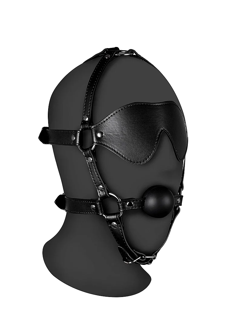 - 1 x Arnés de cabeza con los ojos vendados y mordaza de bola firme - Negro